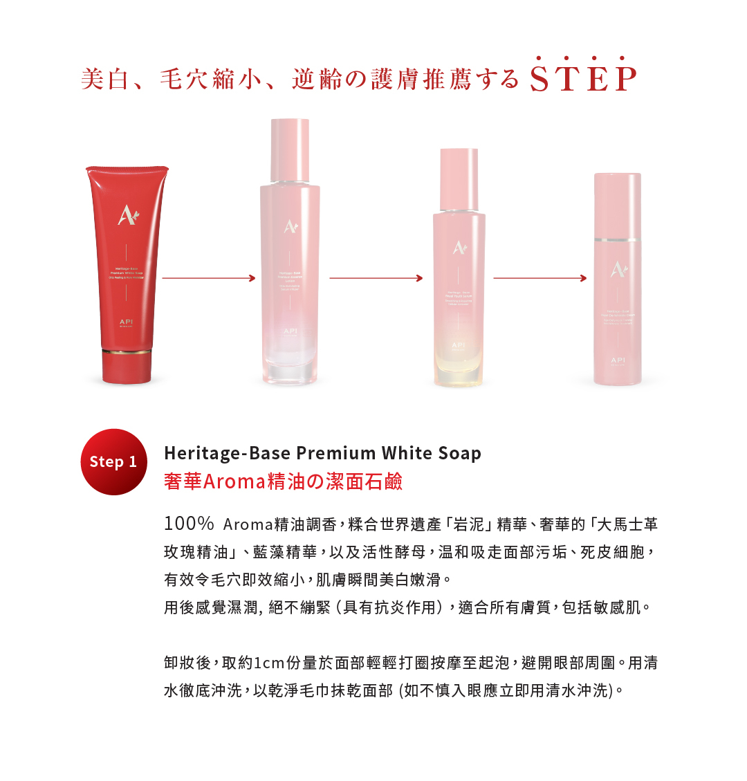 糅合世界遺產「岩泥」精華、奢華的「大馬士革玫瑰精油」、三重細胞間脂質、活性酵母、納豆精華、藍藻精華,