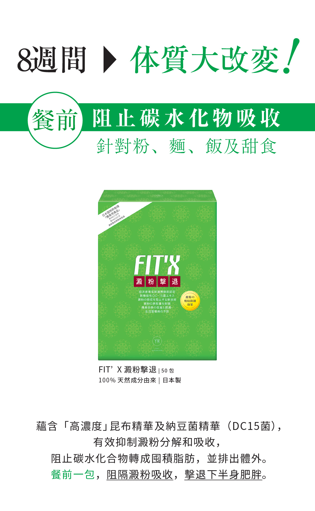 配合日本特許取得「斷糖專利」的DC15納豆菌、莎拉木精華、特濃石榴葉精華、綠茶氨酸,有效「斷糖」抗炎、阻止食餐中的「碳水化合物」囤積脂肪,改善「體質健康」效果極佳。